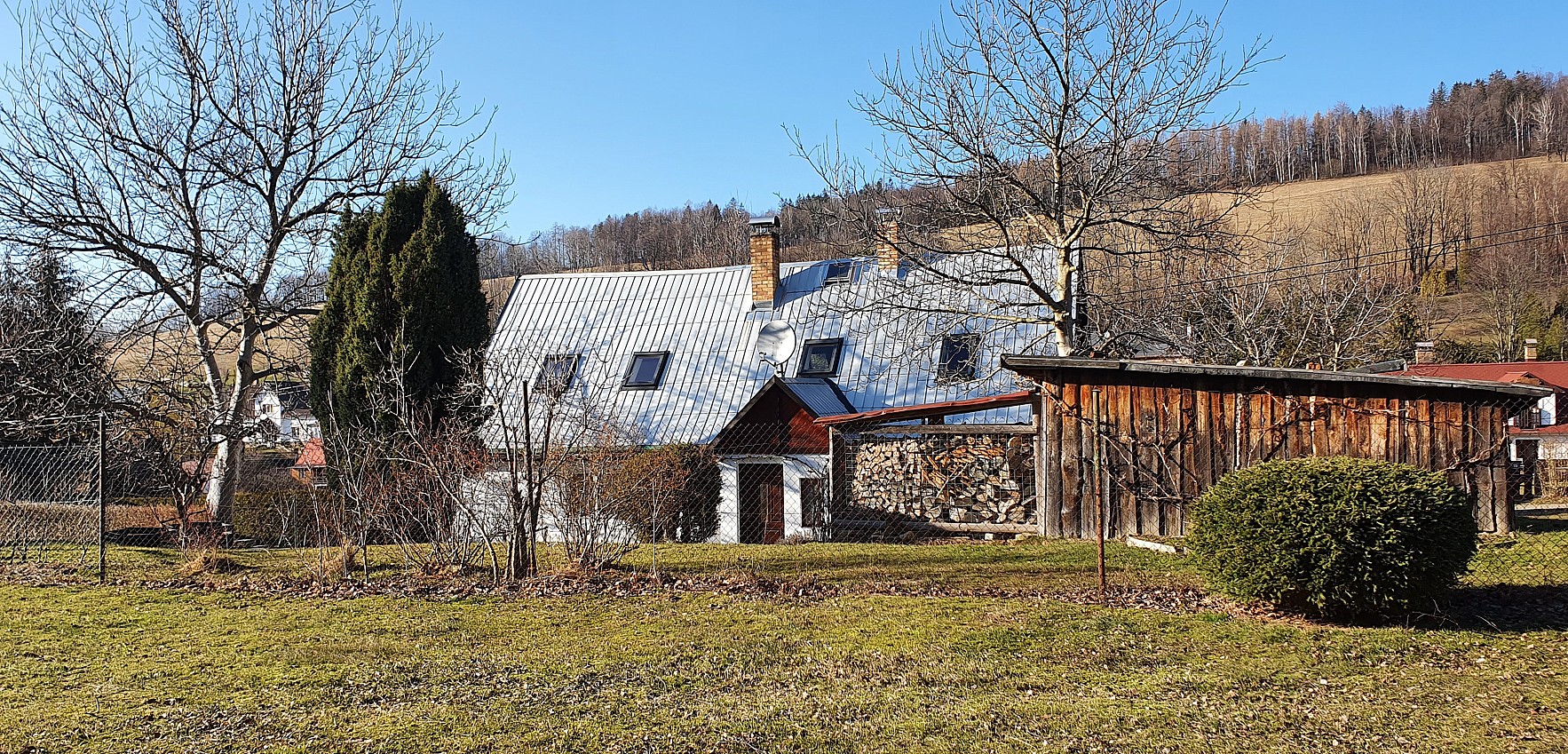 Chalupa o celkové užitné ploše 143,8 m² se nachází v horní části obce při tzv. lázeňské pěšince na mírně se svažujícím pozemku o celkové výměře 1564 m². Na pozemku je postaveno kryté stání pro jedno auto, kůlna o cca 30 m² a dřevník 4 m². Na upravené zahradě, s množstvím vrostlých stromů a keřů (převážně ovocných), dominují dva ořešáky, které v letních měsících vrhají příjemný stín, pokud se zrovna nechcete slunit.
